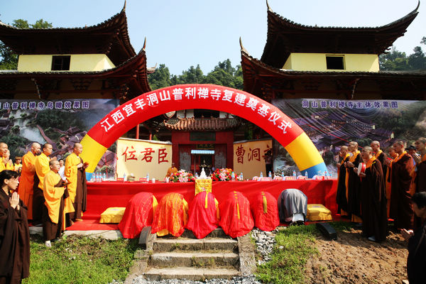 近年来,为扩大洞山景区山林、土地面积,县委、县政府在原有225亩山林,56亩土地的基础上,还专拨资金640万元,新征土地、山林面积两千亩;加大了祖庭配套基础设施建设,投资1400万元新修了通往祖庭的专线旅游公路。2010年8月,洞山普利禅寺复建工程全面启动,主要由民宿、寺院主体工程、禅修中心、上客堂等部分组成;寺院规划总建筑面积27000平方米,总投资约一亿元,预计工期为三年。截至目前,累计投入资金约8000万元,完成了寺院的主体工程建设,正在进行内部装修和寺院绿化。2014年4月7日,举行了法堂开光暨中韩曹洞宗纪念良价祖师活动,省内外高僧大德、四众弟子和社会各界人士共600余人出席,韩国曹洞宗宗主智明等韩国僧信250人一同参加活动。寺院落成典礼计划于2014年秋举办,复建完成后的洞山普利禅寺,不仅将是一个院落恢宏的弘道传法建筑群,而且也将成为宜丰禅宗文化旅游的一个新亮点。