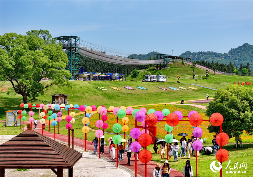 人民网宜丰5月16日电(朱海鹏)5月15日,江西省宜春市宜丰县黄垦镇炎岭村乡村旅游点,吸引许多游客前来游玩。